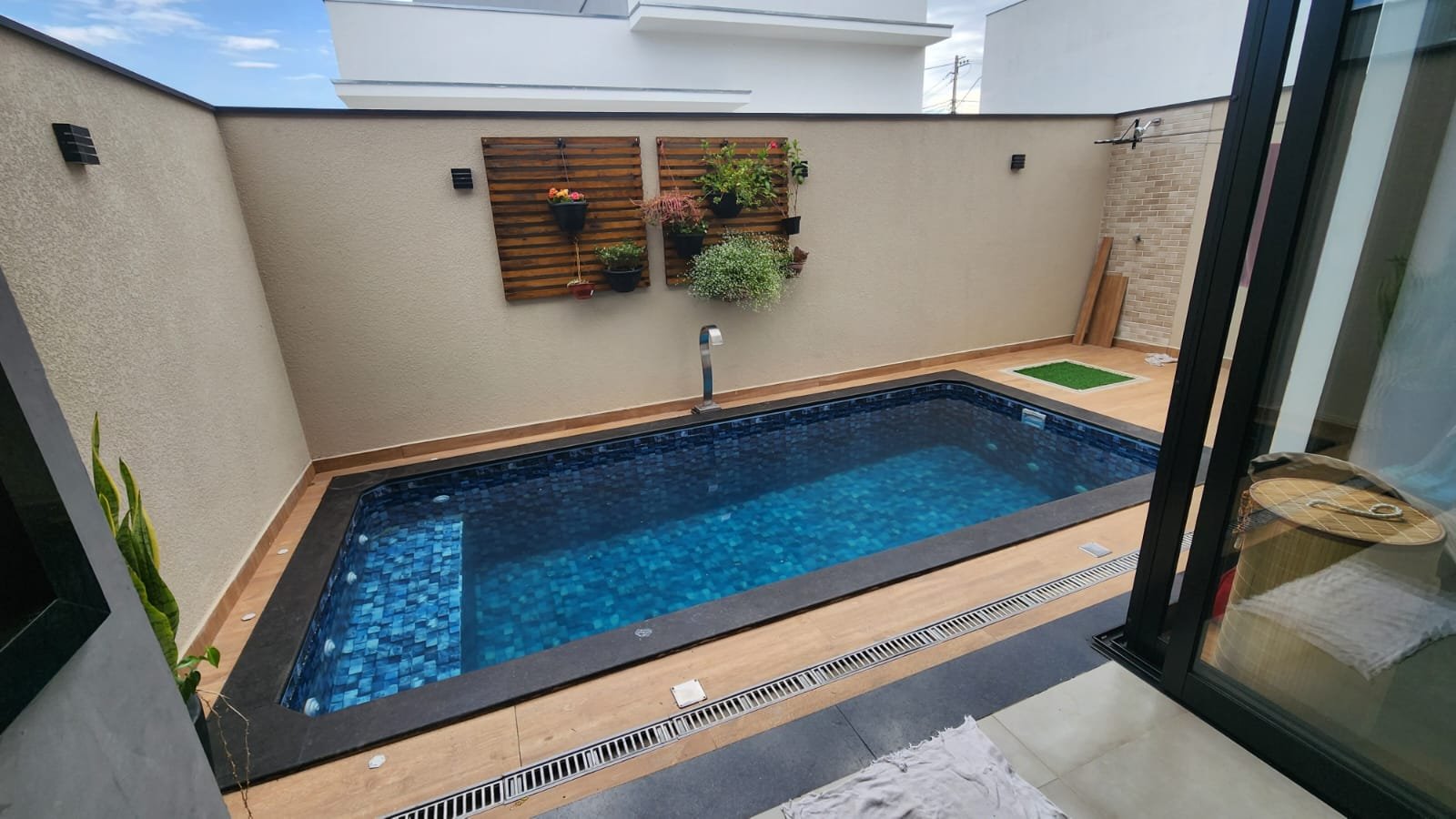A propriedade oferece uma ampla gama de funcionalidades modernas e áreas externas bem planejadas, criando um ambiente ideal para convivência e lazer. Uma das principais atrações é a piscina de 9m², que vem equipada com hidro e aquecimento solar. Essa combinação não apenas permite o uso durante todo o ano, mas também proporciona relaxamento e conforto adicionais. A piscina está estrategicamente localizada para maximizar a integração com as demais áreas externas, facilitando momentos de diversão e relaxamento.