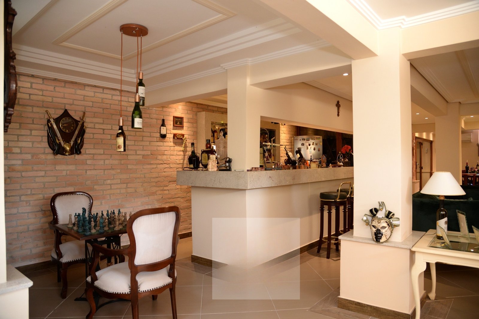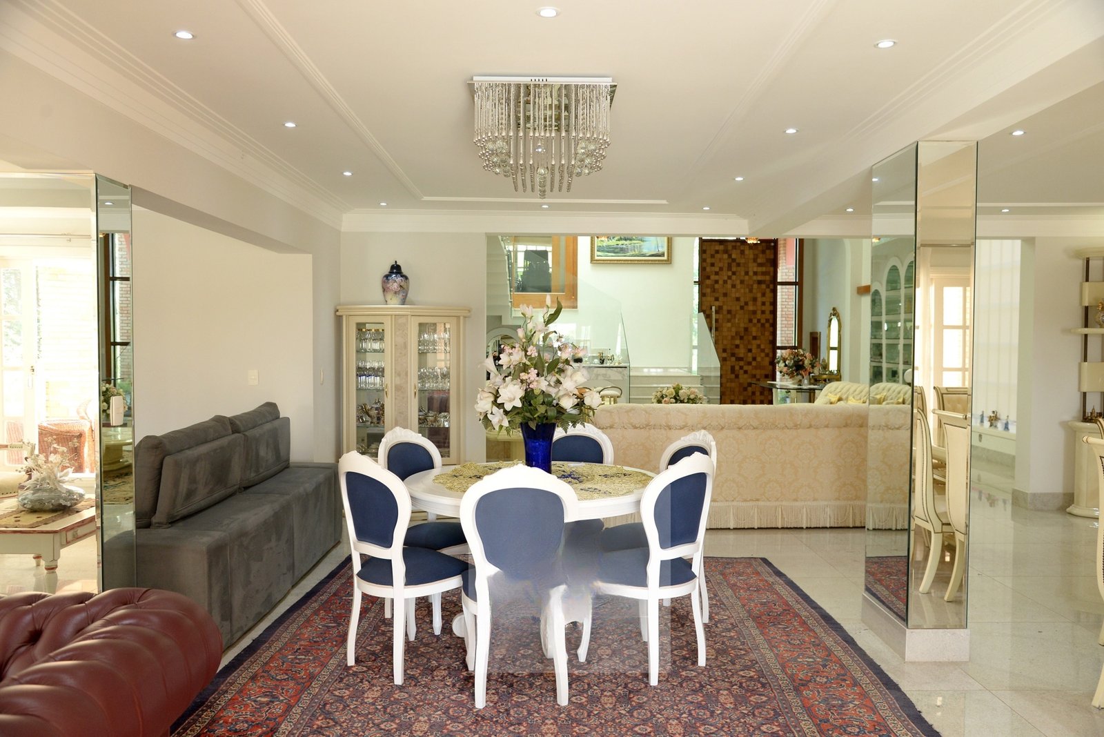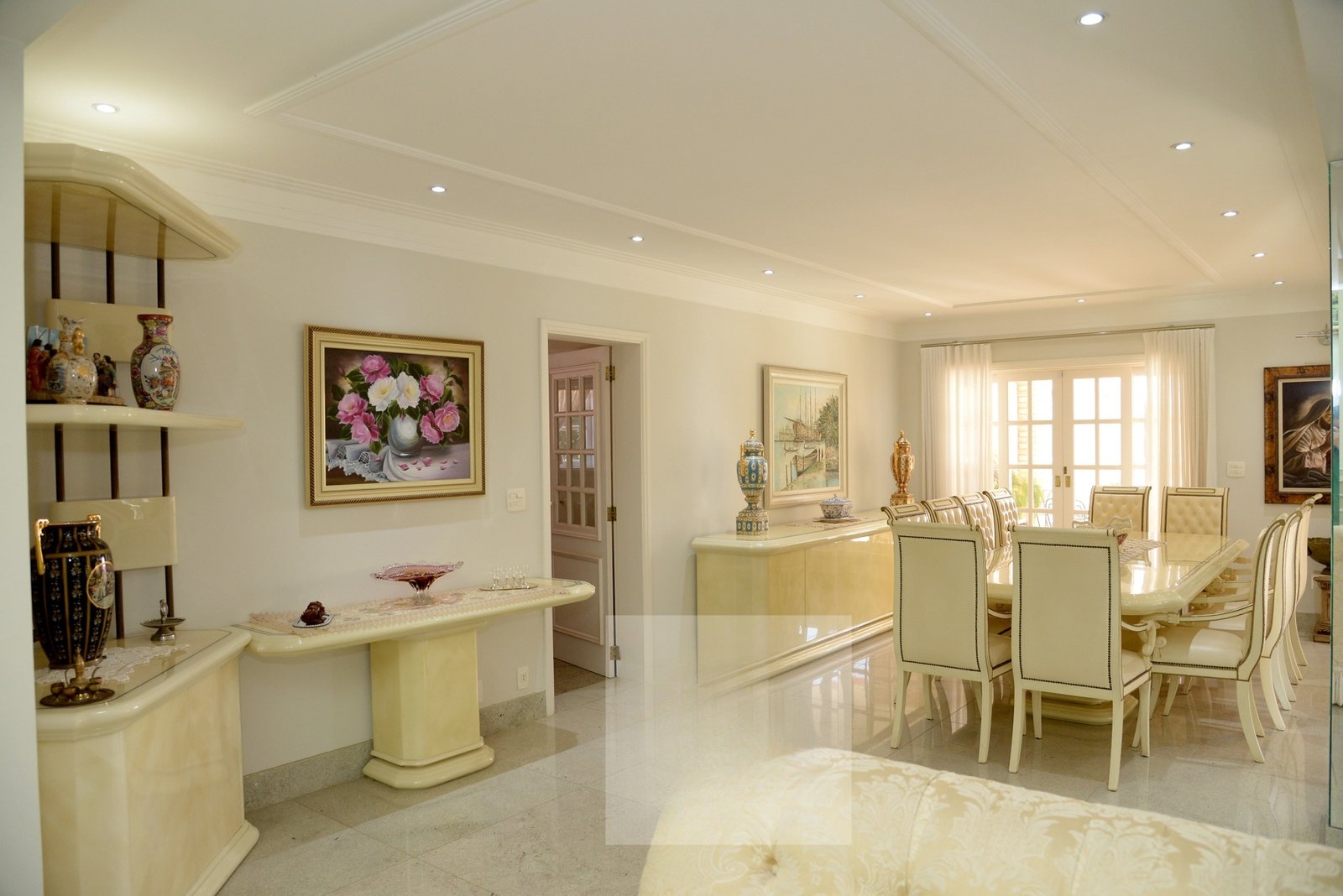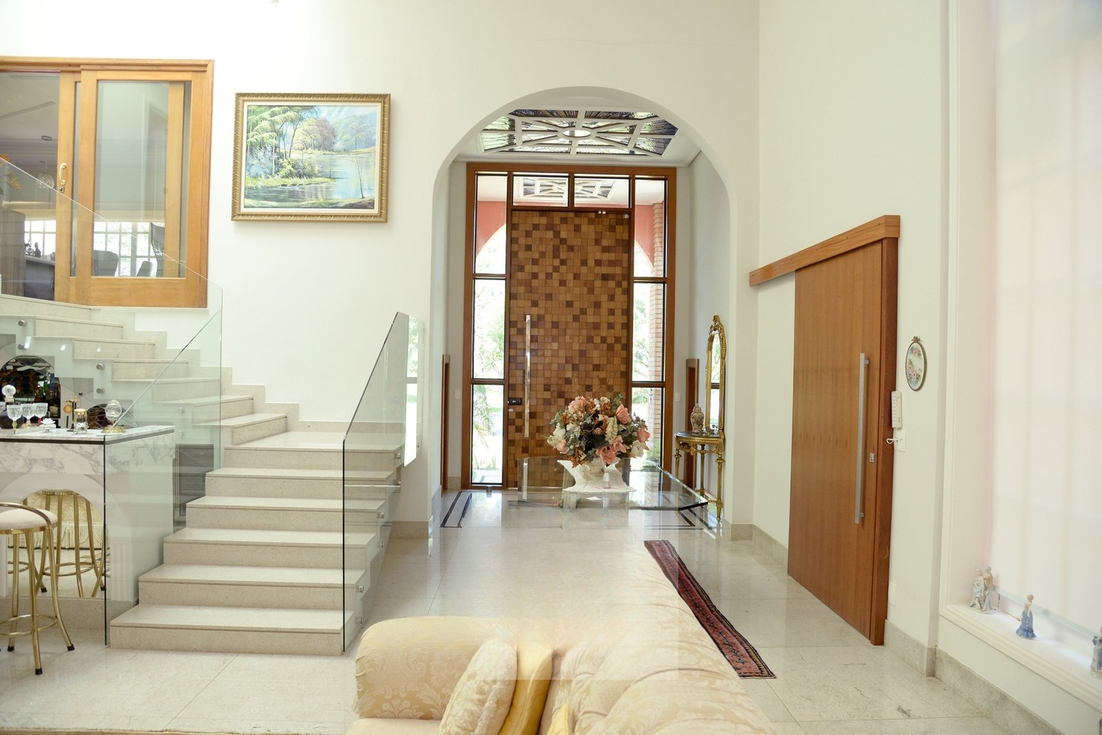 O belo hall de entrada, permite acesso a uma ampla sala com 4 ambientes que dá acesso a varanda gourmet com espetacular vista para o Lago Azul.