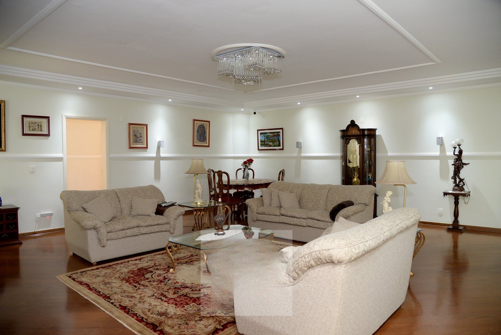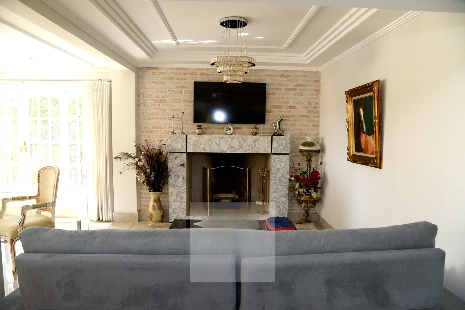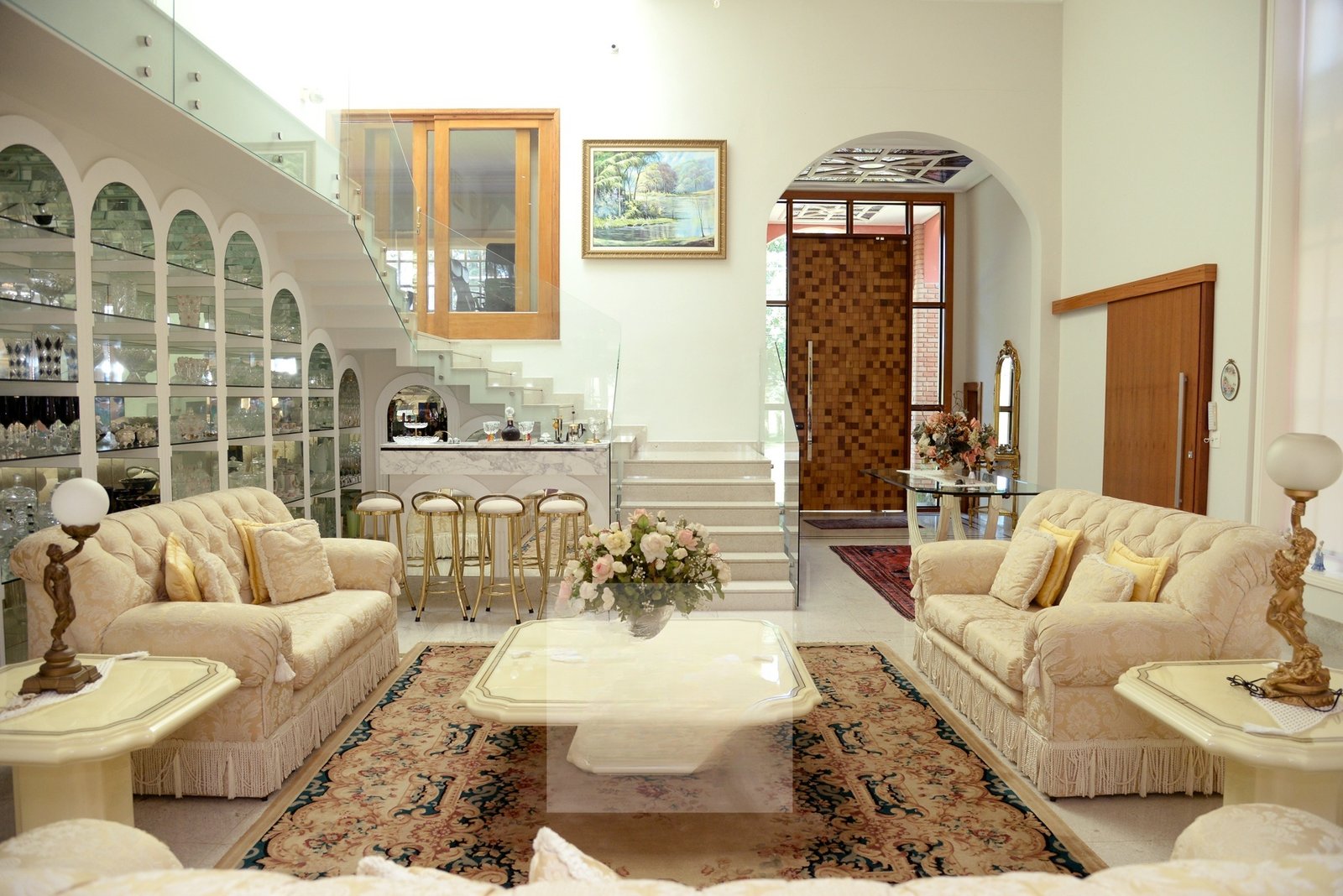 O belo hall de entrada, permite acesso a uma ampla sala com 4 ambientes que dá acesso a varanda gourmet com espetacular vista para o Lago Azul.