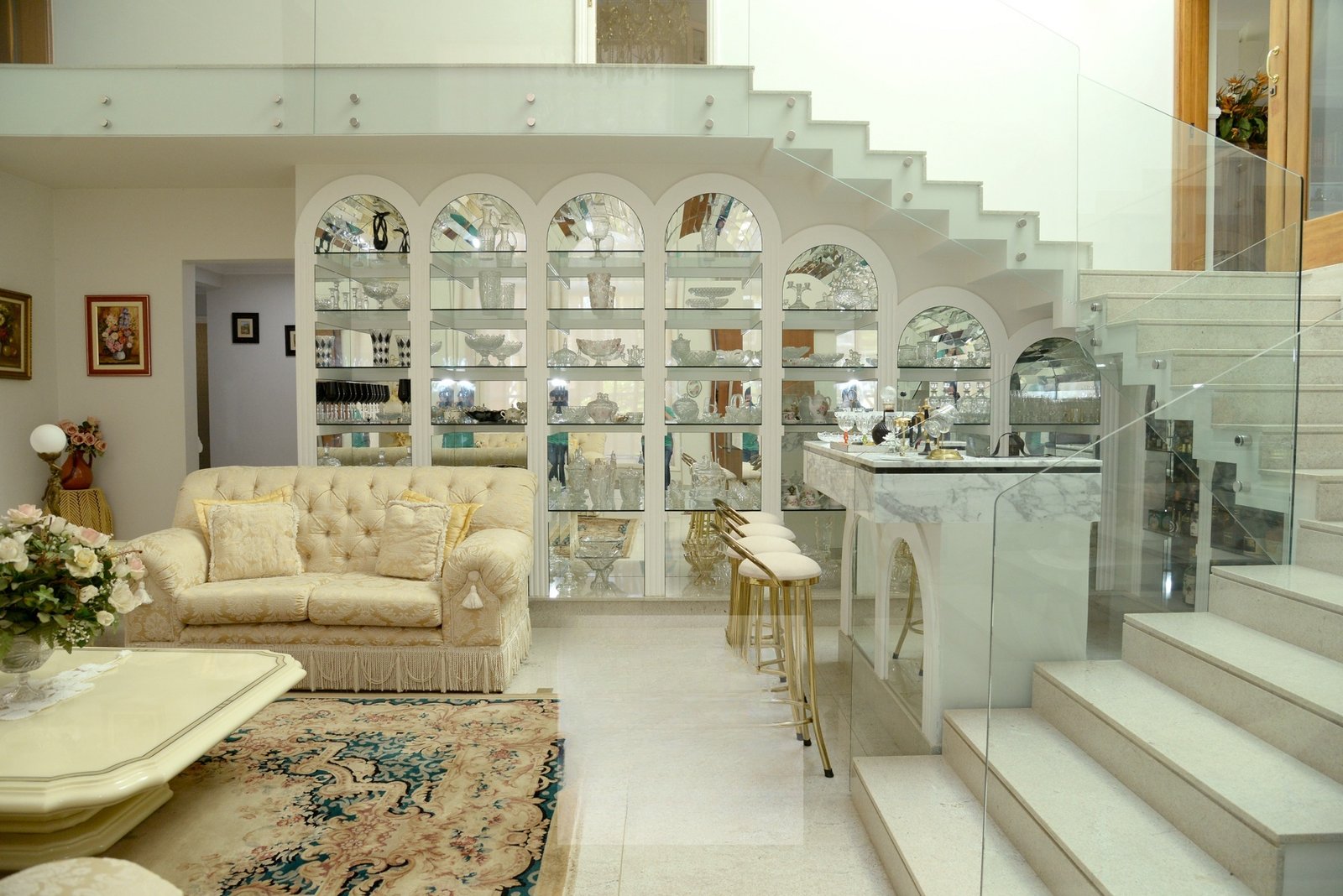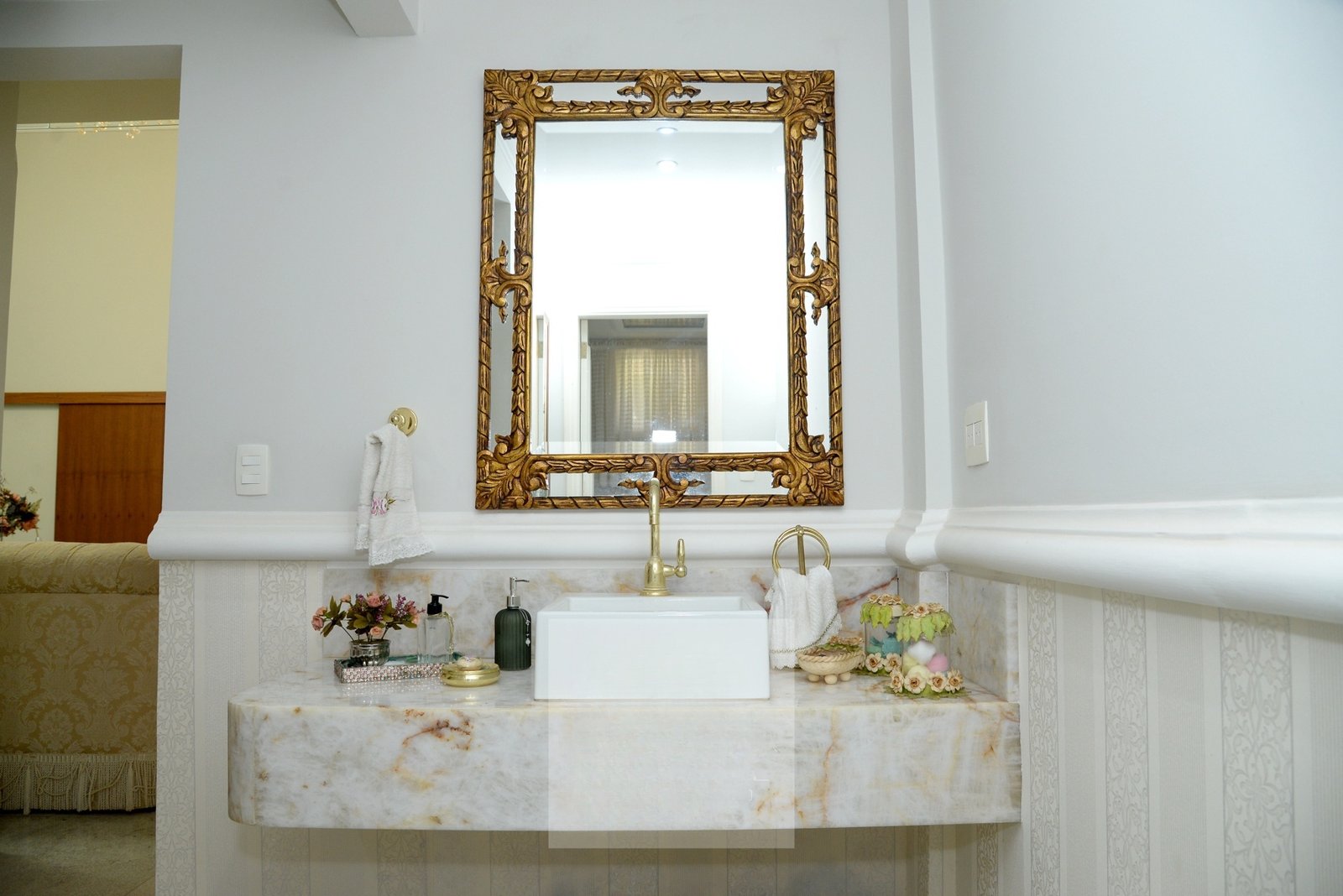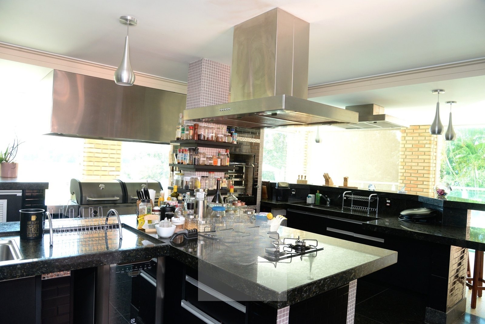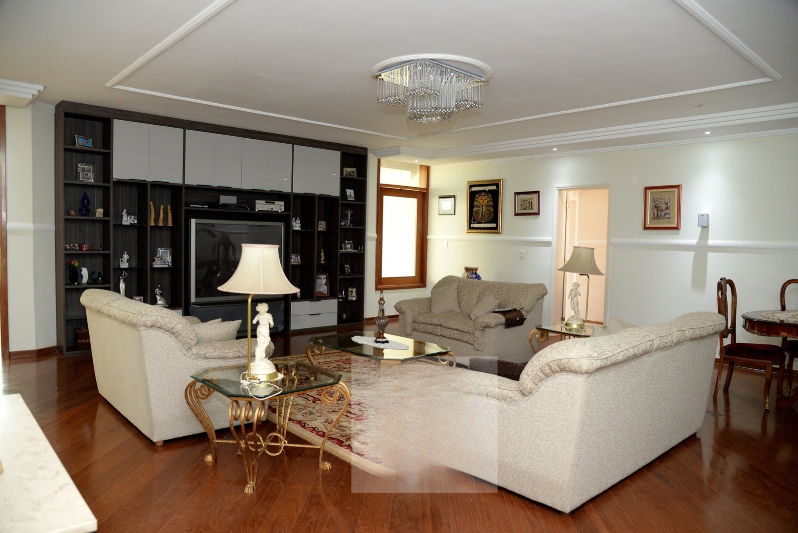 O belo hall de entrada, permite acesso a uma ampla sala com 4 ambientes que dá acesso a varanda gourmet com espetacular vista para o Lago Azul.