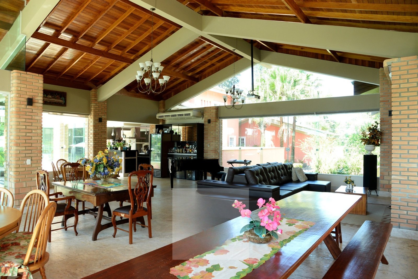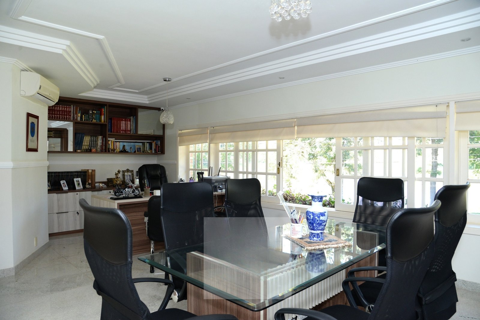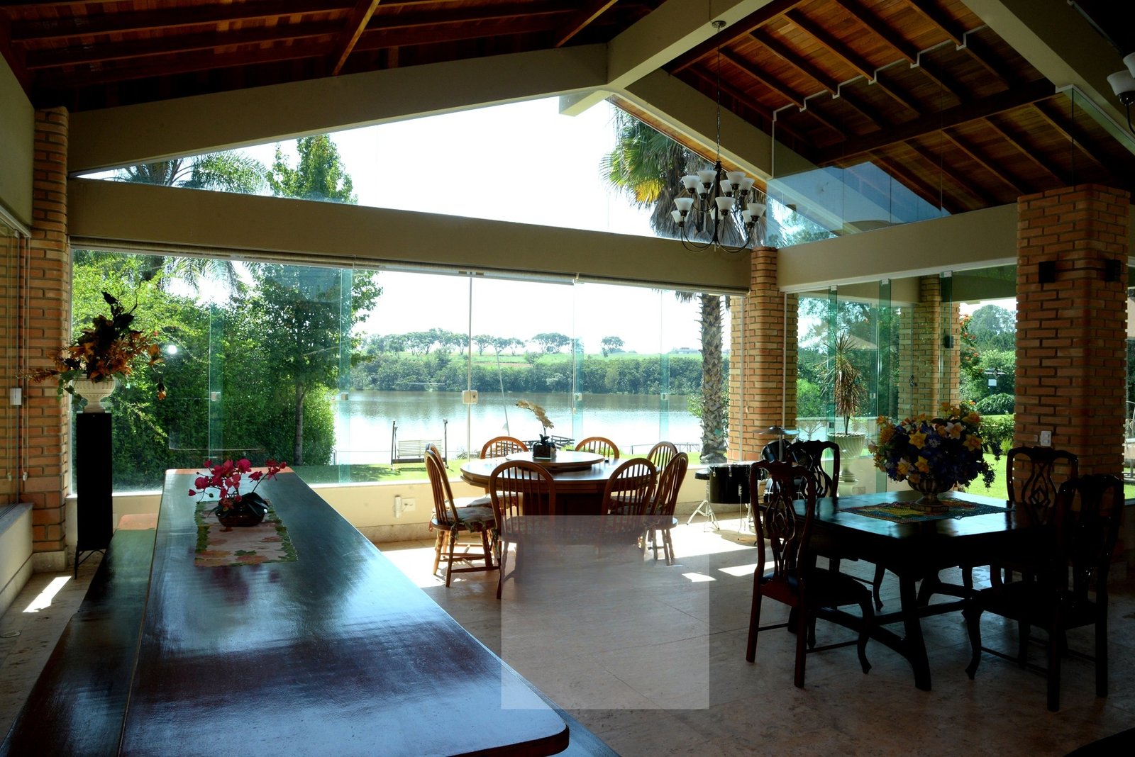 Deliciosa sala de almoço, cozinha, dois escritórios sendo um com visita para o lago, lavabo e uma aconchegante suíte térrea.