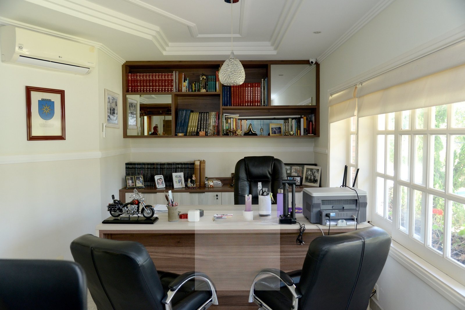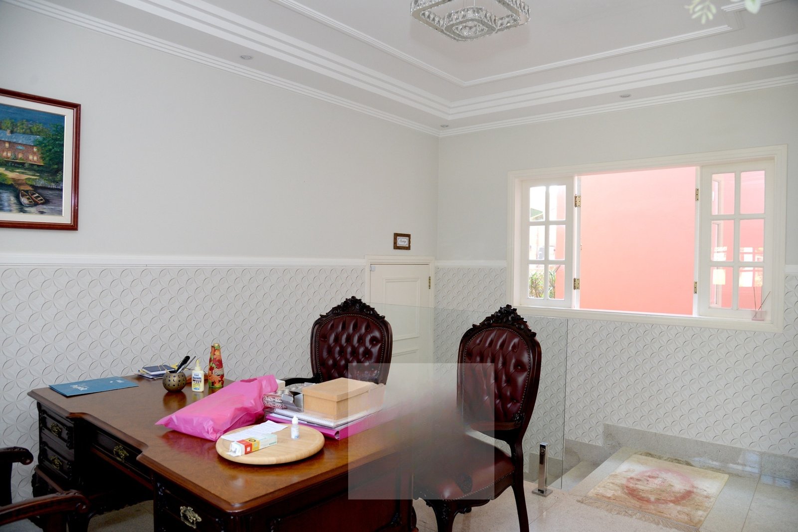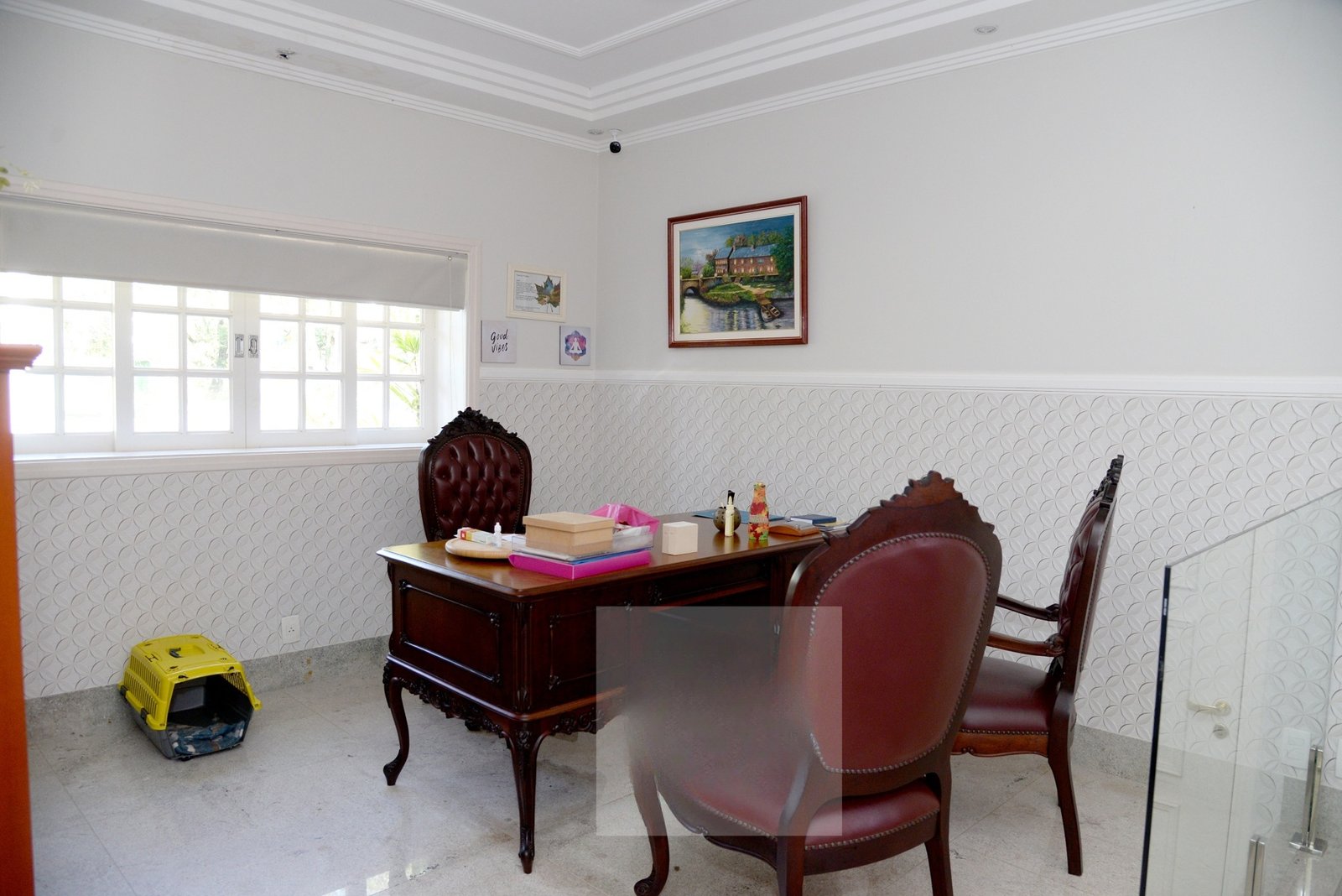 Deliciosa sala de almoço, cozinha, dois escritórios sendo um com visita para o lago, lavabo e uma aconchegante suíte térrea.