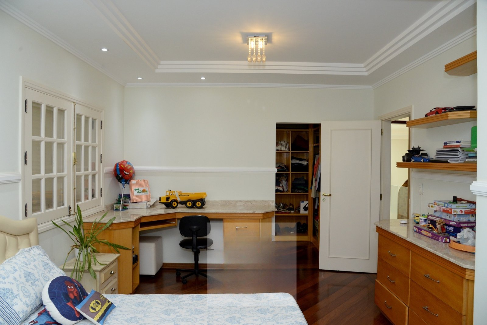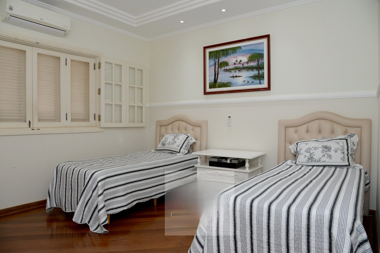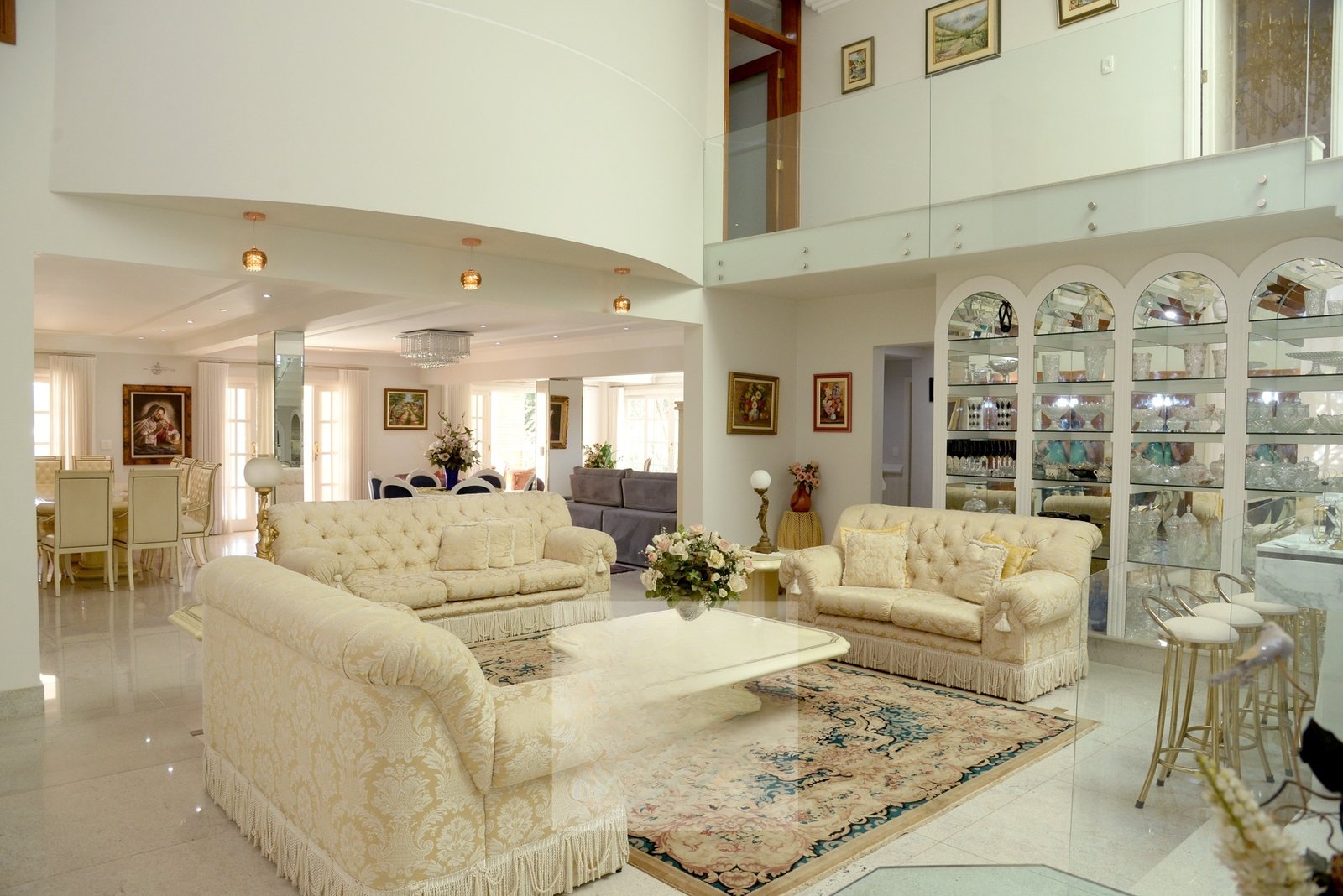 O andar superior conta com uma enorme Sala de TV e mais 4 suítes sendo a Master com closet, varanda e dois banheiros, todas com ar-condicionado.