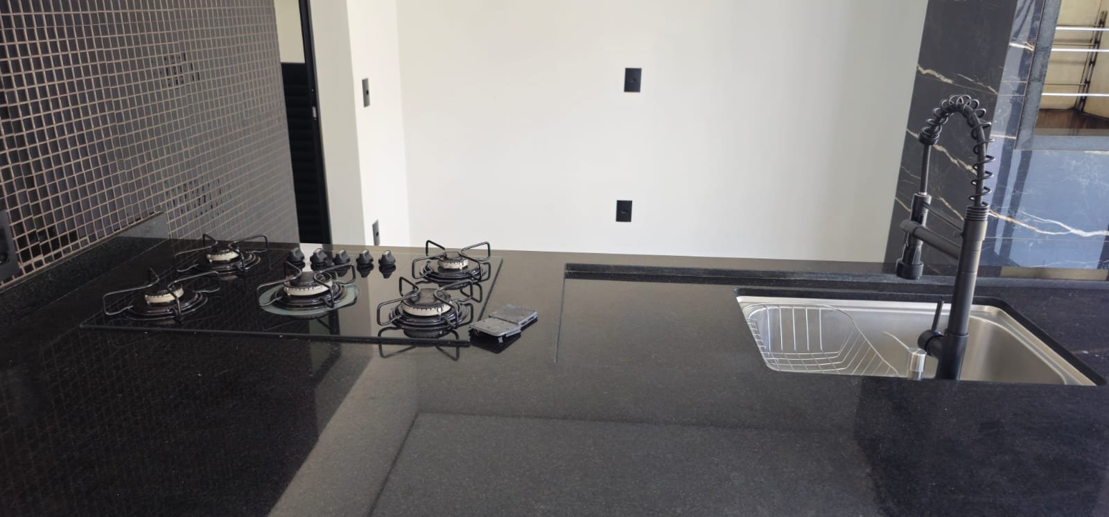 A cozinha é um verdadeiro sonho para os amantes da culinária. Funcional e bem planejada, está equipada com eletrodomésticos modernos e de alta qualidade. Seu layout eficiente facilita o preparo das refeições, seja para um jantar íntimo ou para um grande evento social. Além disso, a ampla bancada e os armários bem distribuídos oferecem praticidade e organização, tornando a cozinha um espaço perfeito para receber amigos e familiares.